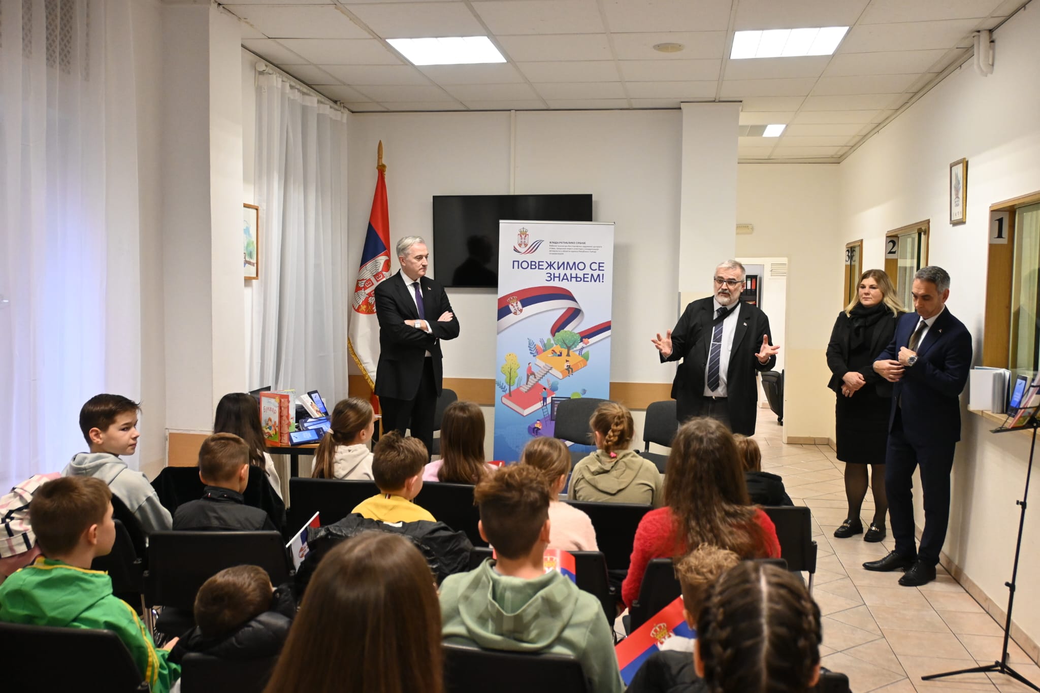 Prisutne je na početku pozdravio generalni konzul dr Aleksandar Đurđić, ukazavši da su ciljevi projekta „Povežimo se znanjem“ pružanje podrške i unapređenje položaja prosvetnih radnika u inostranstvu, ali i približavanje srpske književne, istorijske i kulturne baštine deci koja pohađaju Dopunsku školu srpskog jezika. Prof. dr Branko Rakić je u svom obraćanju naveo da Republika Srbija pridaje veliki značaj očuvanju srpskog jezika, kulture i nacionalnog identiteta u dijaspori i rekao da je važno da deca, pored nemačkog jezika na kojem se školuju, u okviru Dopunske škole na srpskom jeziku dobro nauče i svoj maternji jezik i ukazao da sve što žele mogu postići vrednim radom, trudom i učenjem.